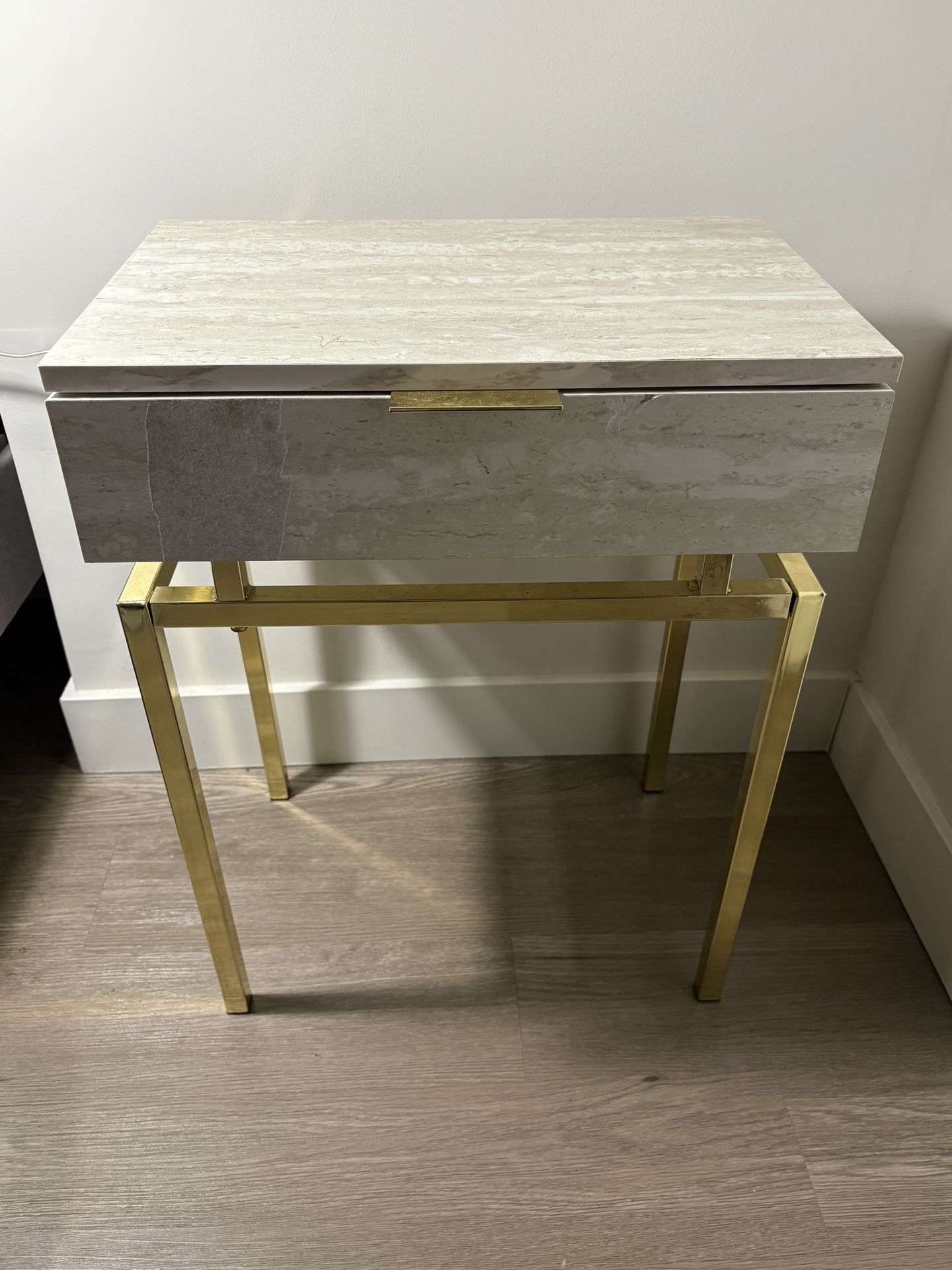 Really cute nightstand or end table, only has one blemish otherwise it’s perfect! Great if you’re just moving in and want some furniture you can swap out later !