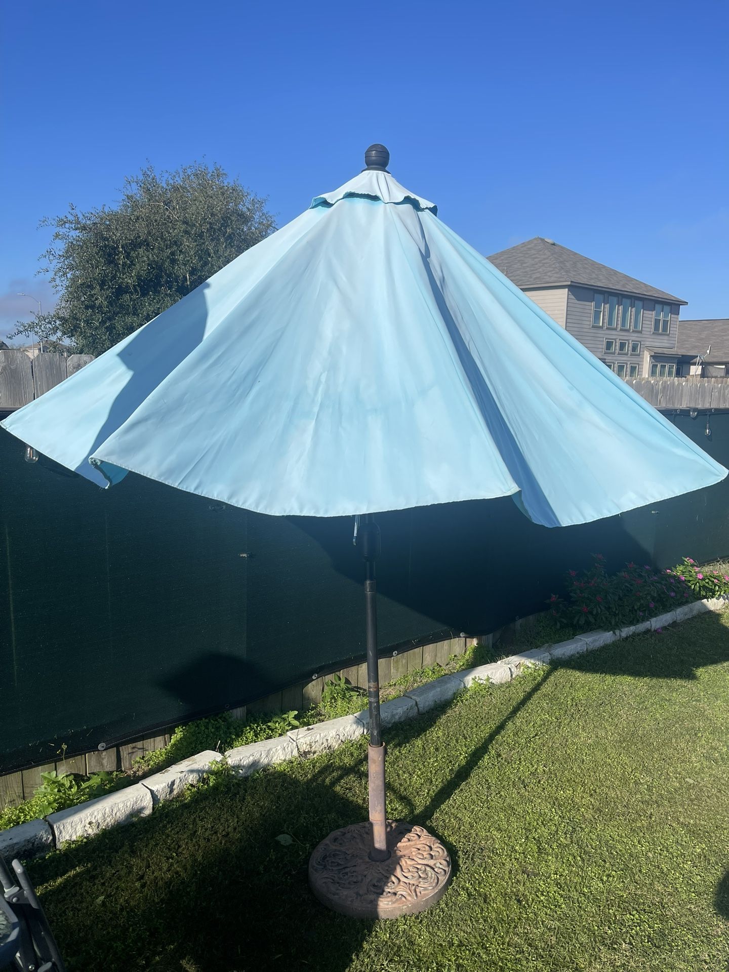 Patio Umbrella And Stand for only $100. The stand is very heavy. It weights about 40 pounds giving the umbrella stability during windy days. Location North Katy close to Cypress. Keywords. Garage sale, patio furniture, sombrilla de patio, shade, base, backyard umbrella.