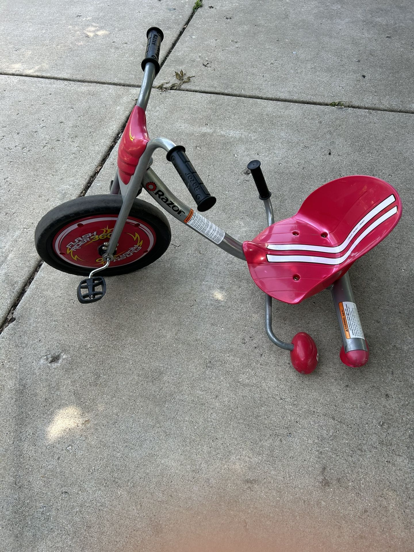 Razor Flash Rider 360. It is in used condition but comes with a newly replaced sparking break and another replacement brake that has not been used. $30 cash and pick up only.
