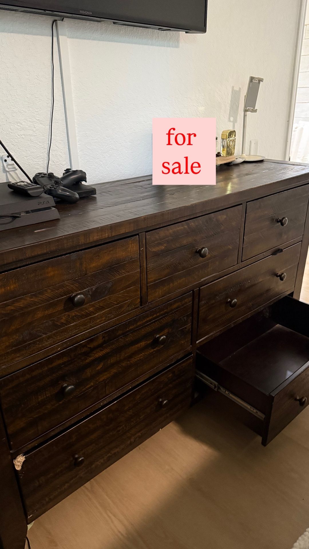 FREE Bed frame and matching dresser The bed frame head rest can be wood to both the dresser and bed frame have chew marks from dog on corner but other than that great shape Nice heavy duty California king