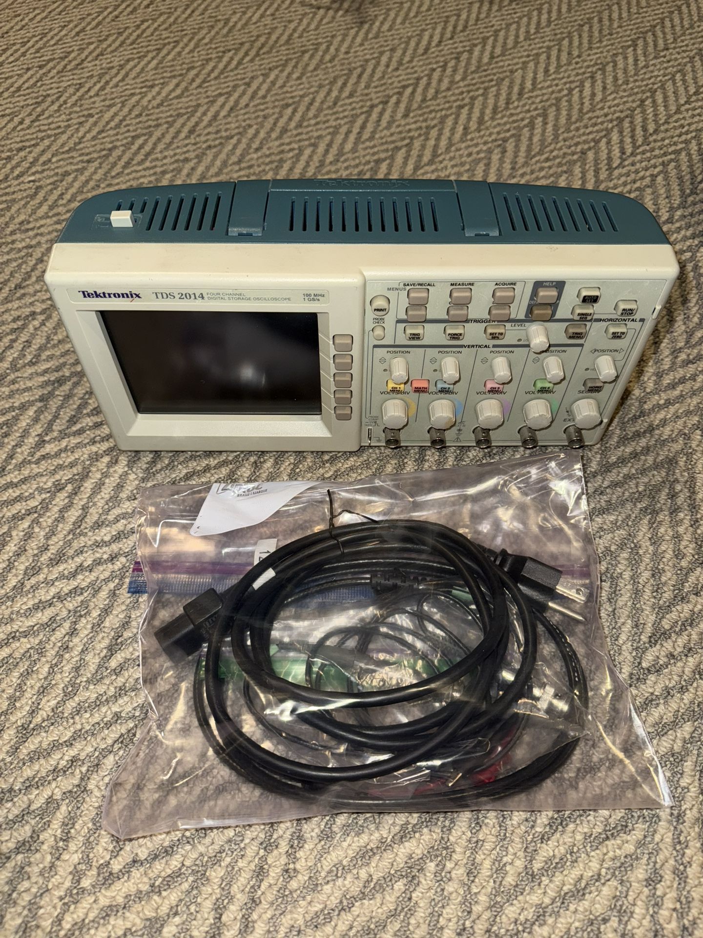 Four-channel digital oscilloscope that is used but in excellent shape. Works fine (video included above). 100 MHz. My dad bought for a project and ended up never doing the project.