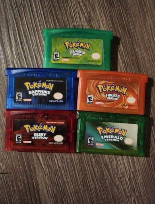 5 pokemon gba reproduction games Pokemon leafgreen Pokemon sapphire Pokemon fire red Pokemon ruby Pokemon emerald They work just like originals $17 each or $80 for all Shipping only