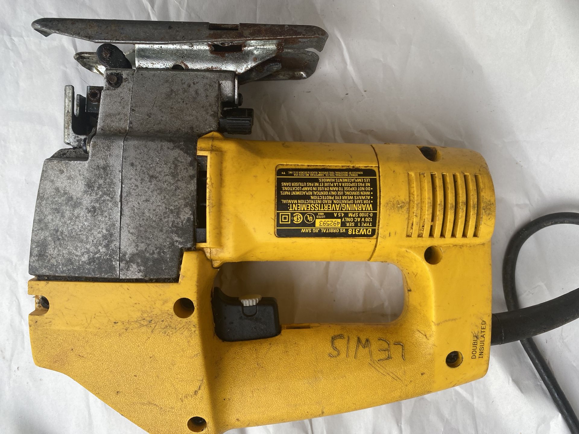 DEWALT DW318 Variable Speed Orbital Jig Saw in good working condition.