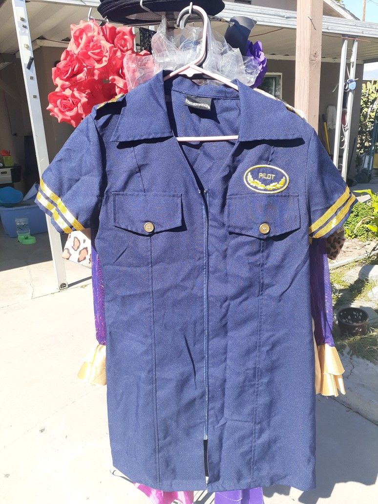 From:underwraps 100% polyester Size:large Zipper needs work Costumes Comes with:pilot hat