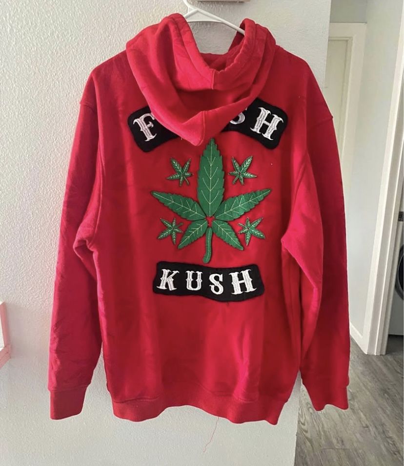 Fresh Kush Mens Large Red Full Zip Hoodie Embroidered All Over Print Sweatshirt