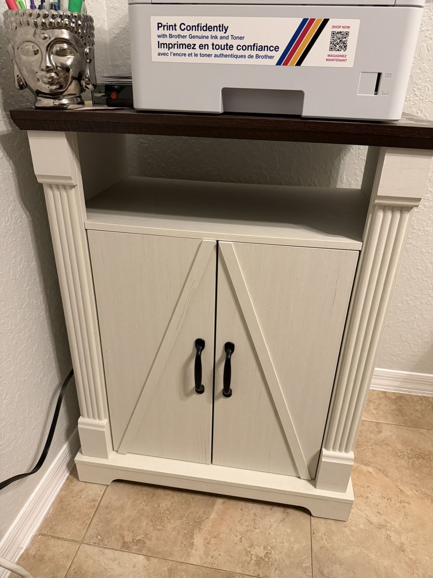 Side table/office/cabinet has shelves on the inside
