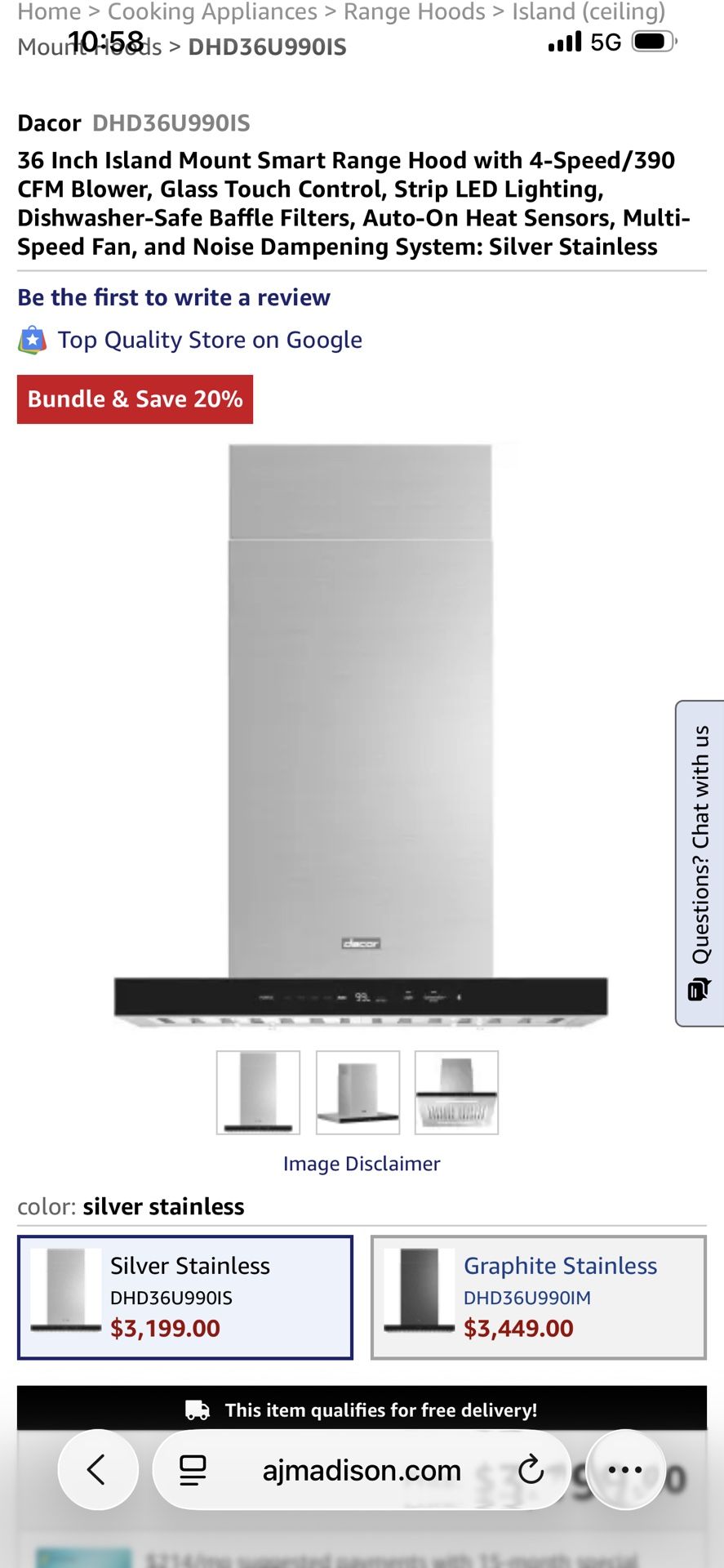 Dacor chimney wall hood