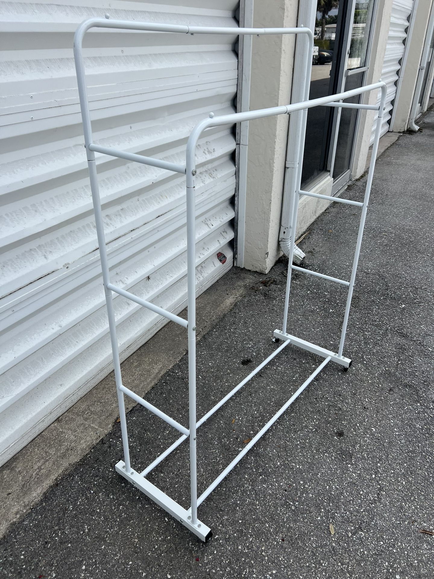 White Metal Rolling Double Garment Clothes Hanging Rack! Great condition! 44x17x58in