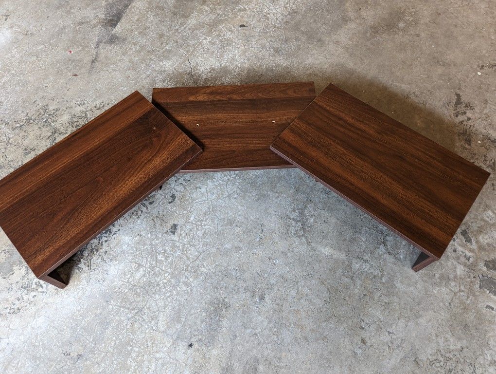 Adjustable 3 piece wooden monitor raiser. Perfect to lift the monitor giving more space to store items under. Lightly used.