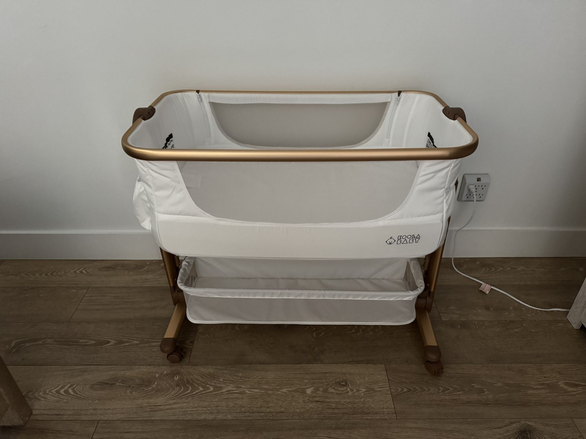 Barely used our baby sleep in her crib most of the time no scratches almost new comes with a small mattress we bought separately