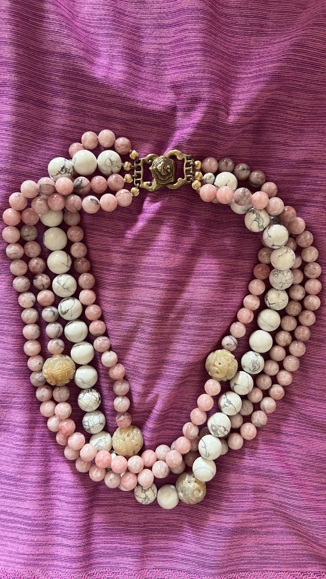 What we have here is a Alice KUO 4 strand necklace The stones are: Howlite, Rhodonite and Serpentine. There are 4 Jade Balls as well The clasp is brass. There are 8 possible gold balls connecting the strands to the clasp. I have also posted the Original appraisal from 2011 that references the value of $2,500.00 at that time The Gemologist store was on Azusa in Covina, Ca at the time. As we all know even though the appraisal is $2,500.00 it all depends on what someone is willing to pay for any item. ALL I ask is to be honest and reasonable BEST OFFER