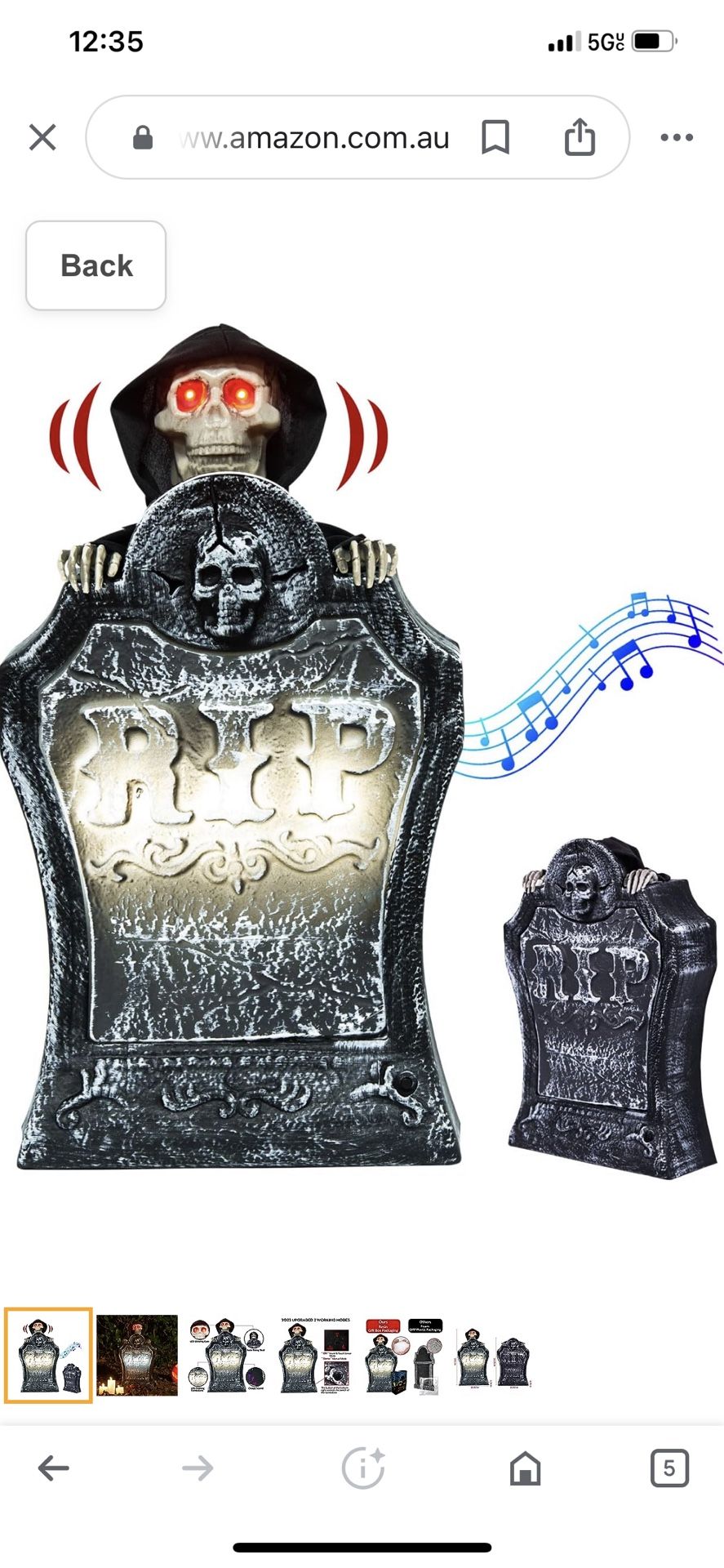 9" Halloween Decorations Resin RIP Graveyard Tombstone with LED Lights, Animated Movable Skeleton Skull with Glowing Eyes and Voice Activation for Yard Lawn Haunted House Outdoor Decor Party Props Brand new