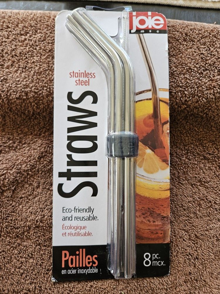 8 Pc Metal Straw Set/ New