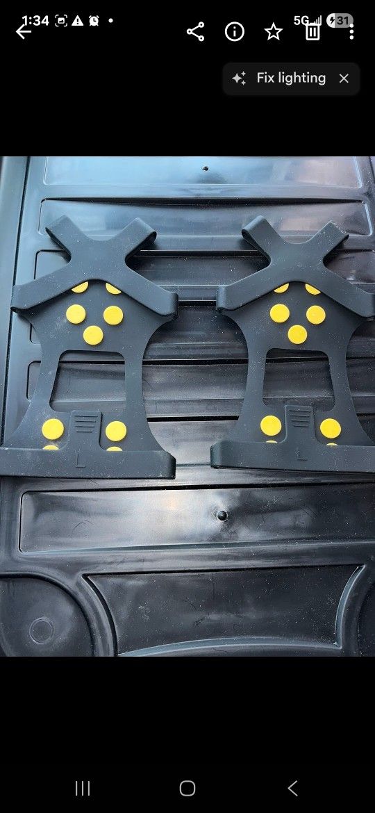 Ice Traction Cleats / Shoe Grips – Pair (Winter Safety) Pair of ice traction cleats designed to slip over shoes or boots for added grip on ice and snow. Great for winter walking, shoveling, hiking, or working outdoors in icy conditions. ✔ Slip-on design ✔ Multiple traction studs for grip ✔ Flexible and lightweight ✔ Fits most shoes and boots (stretch fit) Ideal for: Snowy or icy sidewalks Driveways & parking lots Winter work or outdoor use 📦 Includes pair as shown 📍 Local pickup preferred 💵 Open to reasonable offers Message me if interested.