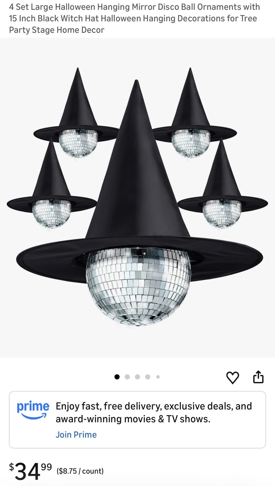 New in box set of 4 Halloween hanging disco ball with witch hat PUO near Cedar and Shepherd