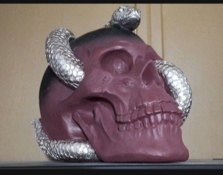 8" Gothic Halloween Skull With Snake Decor