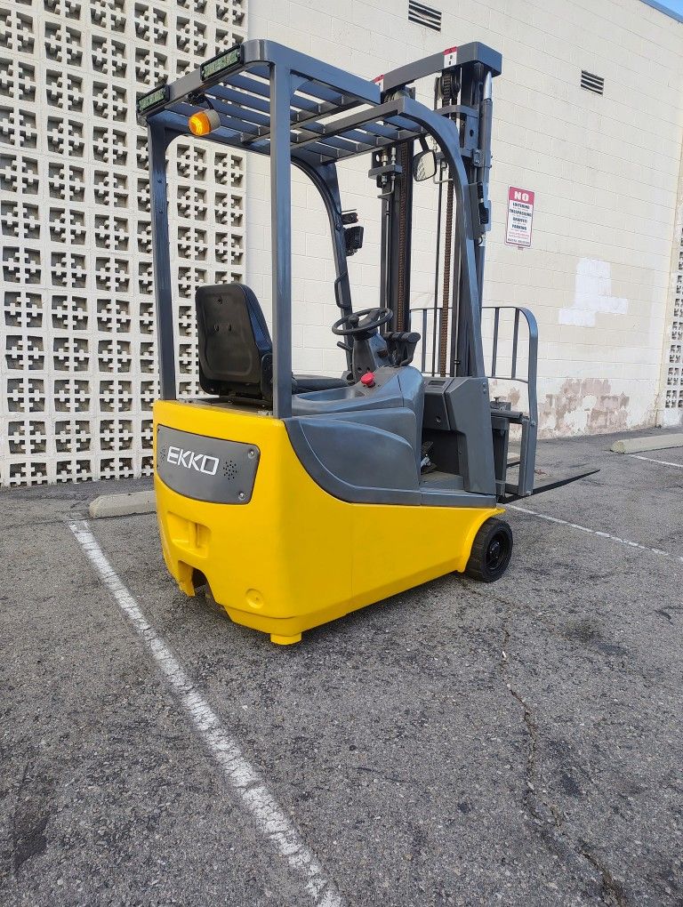 Ekko Electric 3 Wheel Forklift 3000 lbs. 139" w/ side shift 600 hrs, very low hrs New drive tire 24 volt reconditioned battery Charger Included Local Delivery included Perfect for small warehouse with narrow isle. Located in Rialto, Ca.