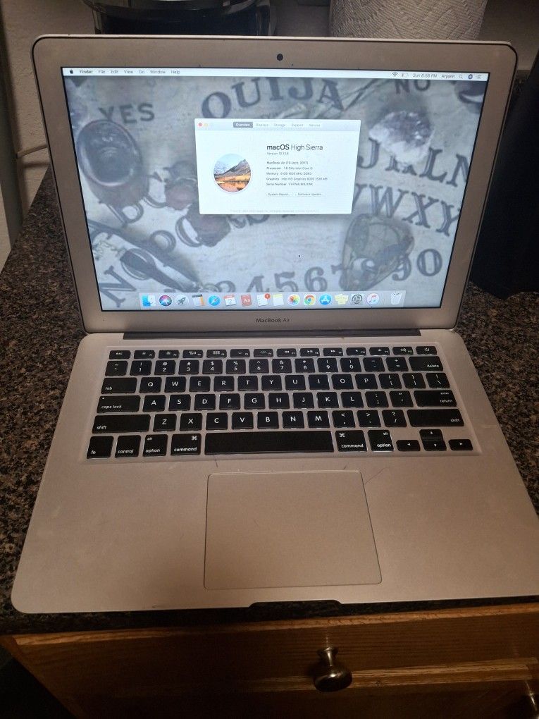 MacOS High Sierra, 13-inch, 8GB, normal use, comes with charger, $50 off price if you pick it up in the next 24 hours.