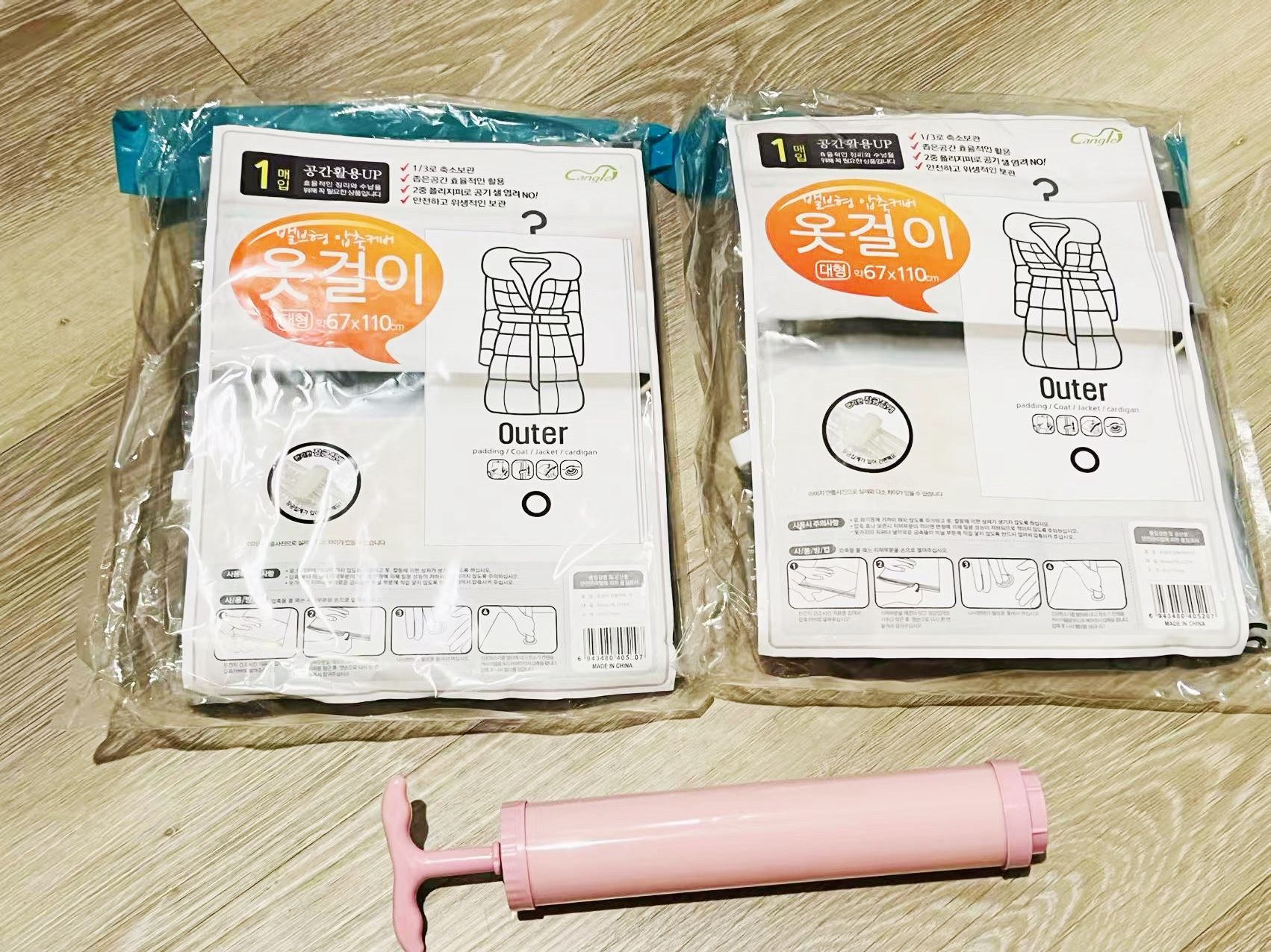 ποΈ Vacuum Storage Bags with Hand Pump β 2 Pack π° $5 β¨ Includes 2 large storage bags and 1 hand pump β¨ Perfect for compressing jackets, blankets, or seasonal clothes π Size: 67Γ110 cm each π Pick-up in Newark, CA