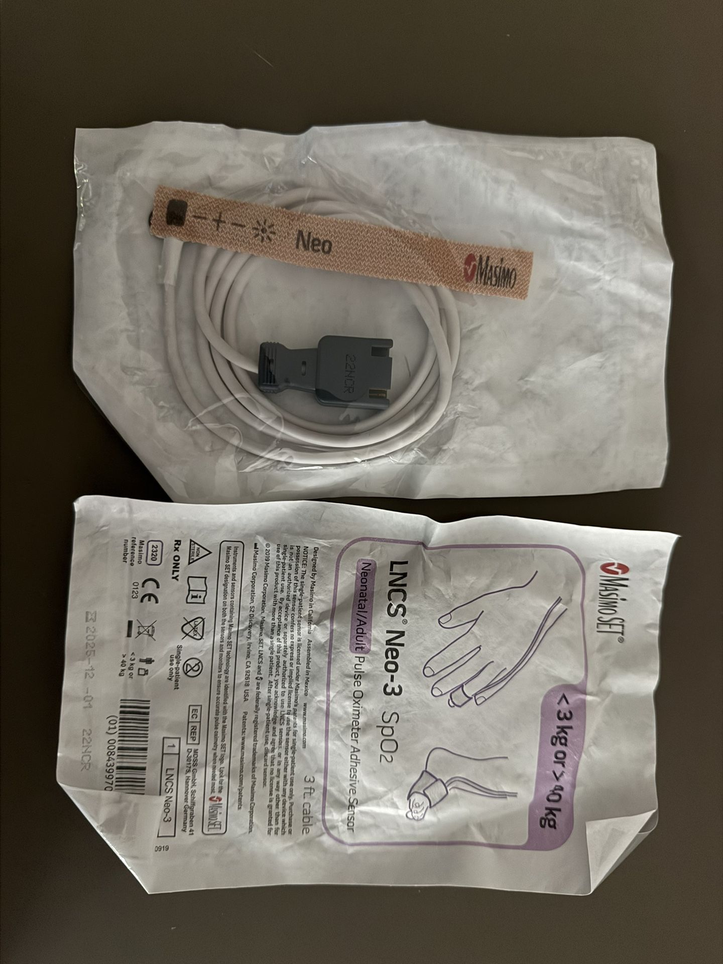 2 pulse oximeter adhesive sensor for <3 kg or >40 kg Unopened package My daughter doesn’t need these anymore. Getting them from companies takes time and they charge you for extra ones. I want to give them for free to someone who needs it.