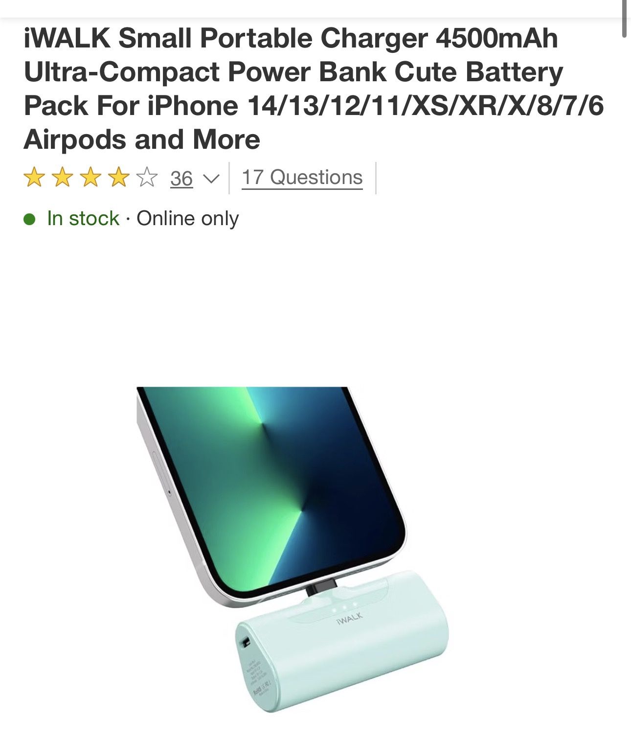 iWALK Small Portable Charger 4500mAh Ultra-Compact Power Bank Cute Battery Pack For iPhone White