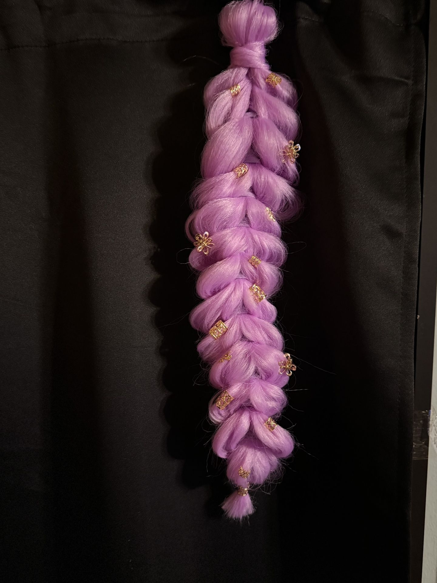 RUMI BRAID - Halloween/Cosplay Hair Extension with Gold accessories. Perfect for Halloween costumes, cosplay, or dress-up! Ready to wear. Includes: - 20” Hand-detailed Rumi braid - Gold hair accessories No braiding skills needed. Perfect for kPop Rumi cosplay, halloween costumes, Fantasy dress-up, Photo shoots. Condition: Brand new Pick up available in Anaheim and certain weekdays in Santa Ana.