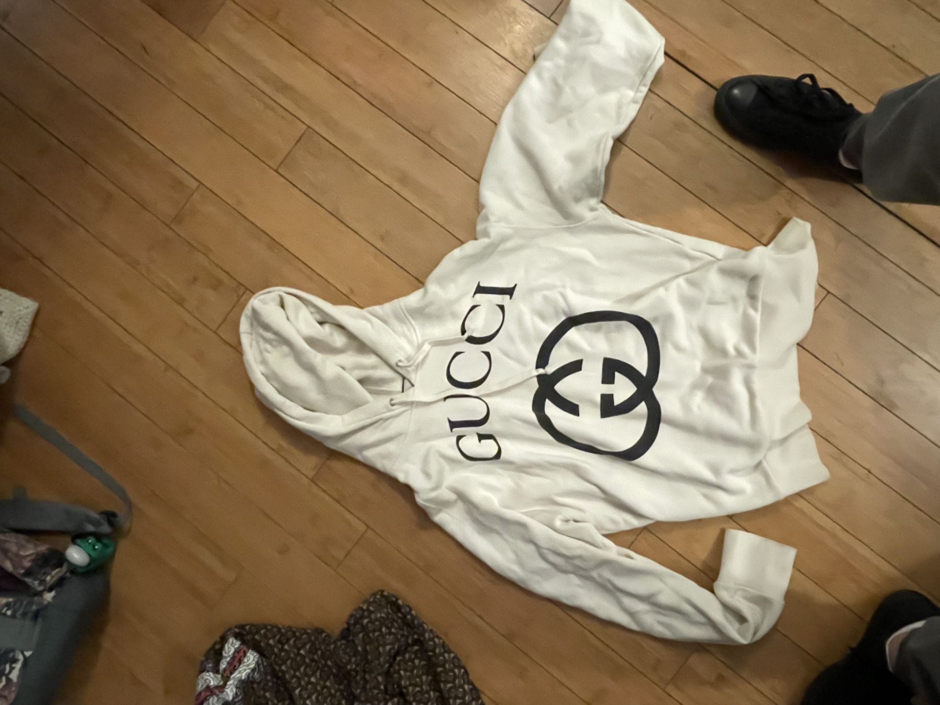 I will have to take more pictures later, but this is an authentic hoodie by the Italian luxury designer brand Gucci. I have loved this sweatshirt and gotten my use out of it, but am having a baby soon and entering saving mode. Would love to see this go to someone else that will enjoy it like I did. - Heavy dense fabric - Great roomy hood - XL - Used but in great condition. - Worn sparingly - comfiest sweatshirt I’ve ever owned - Bought new from store (single owner) - Priced high because I know many people will be inquiring.