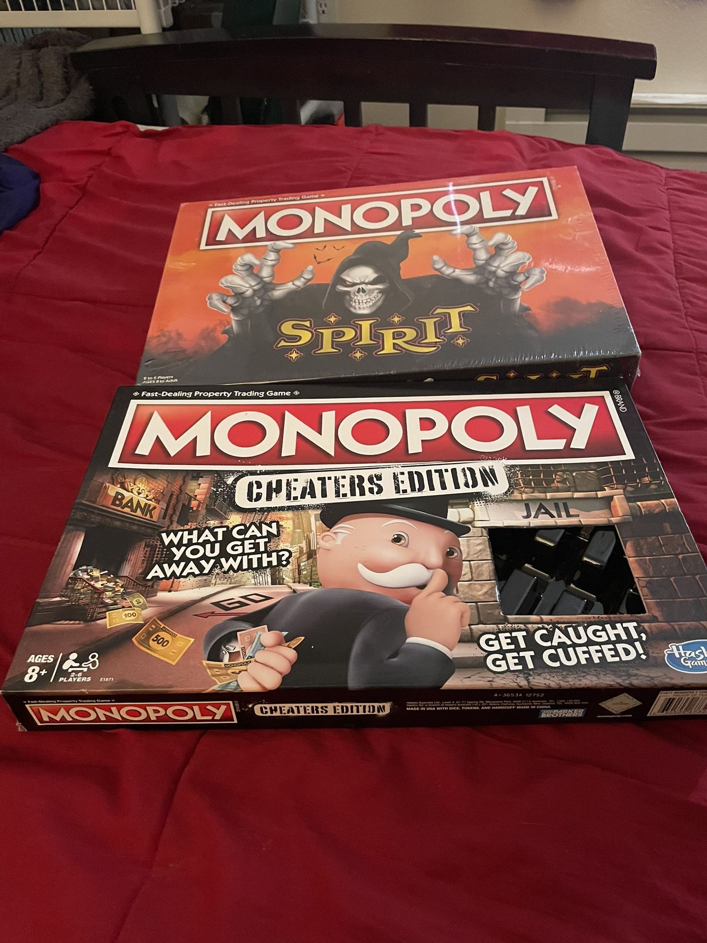 Have two brand new monopoly board games one has never been opened the other one my son opened up to look at it everything is in both