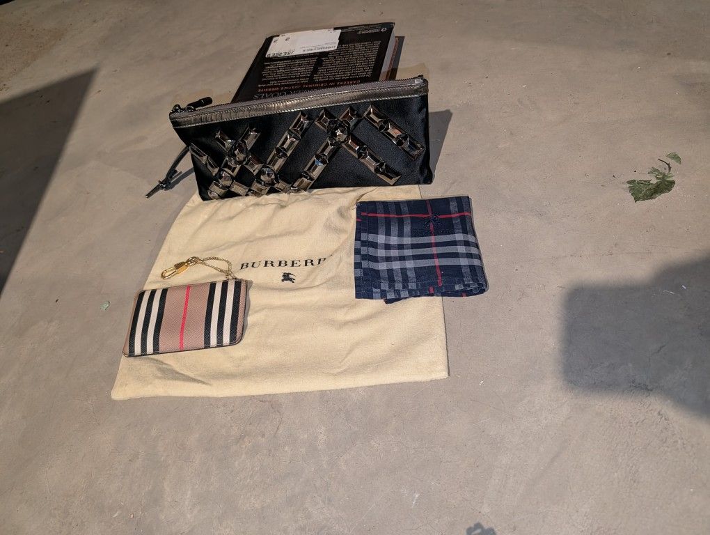 Handkerchief, coin pich with key attachment and clutch. Comes with dust bag