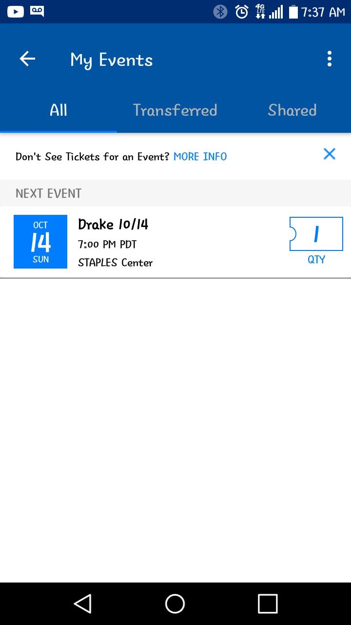 Drake ticket for October 14th at 7pm staple center section pr5 next to the seat highlighted...paid in total 270 ticket can be transfered 150$$$