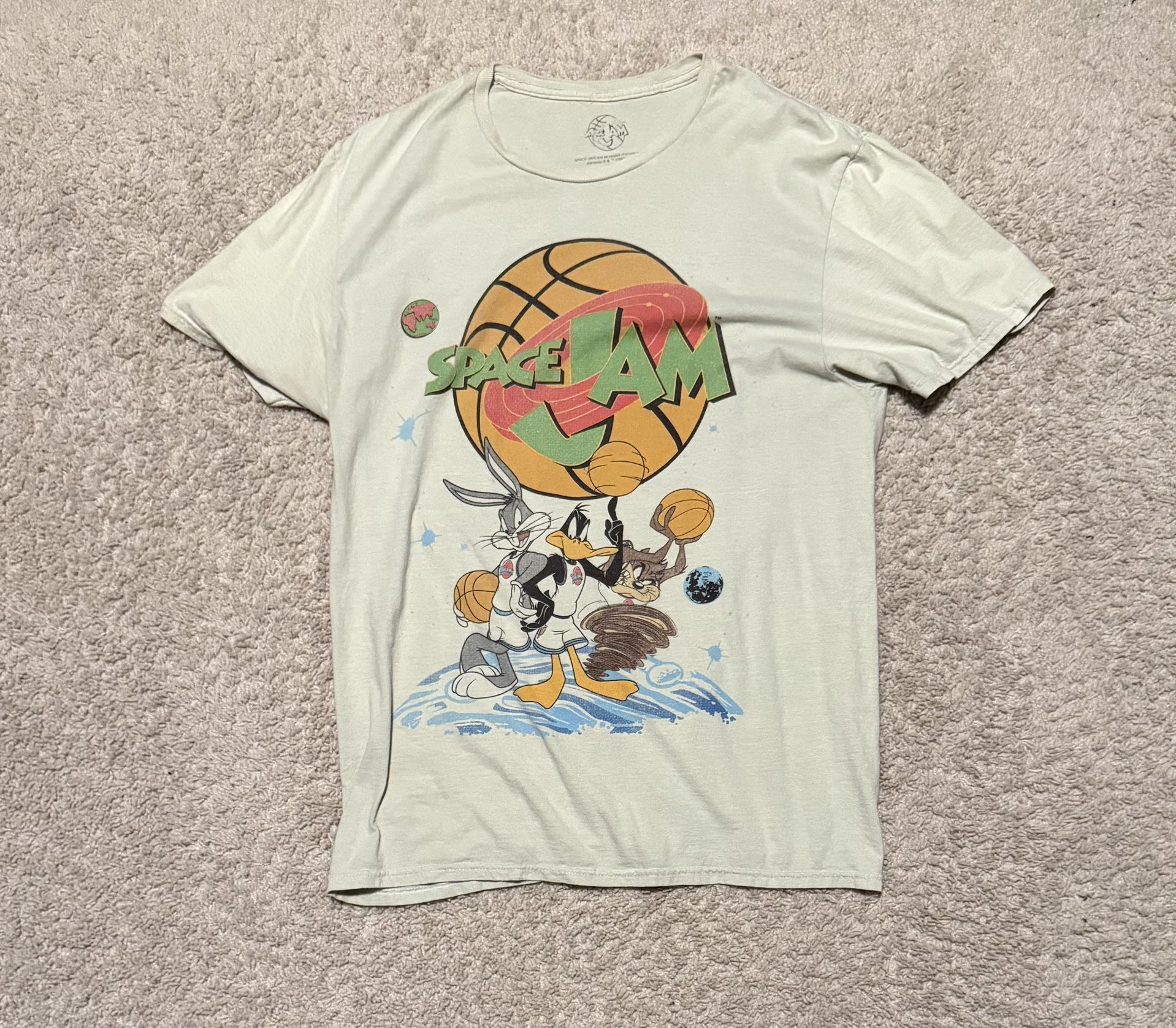 Space Jam Looney Tunes Graphic T-Shirt Beige Size M Short Sleeve