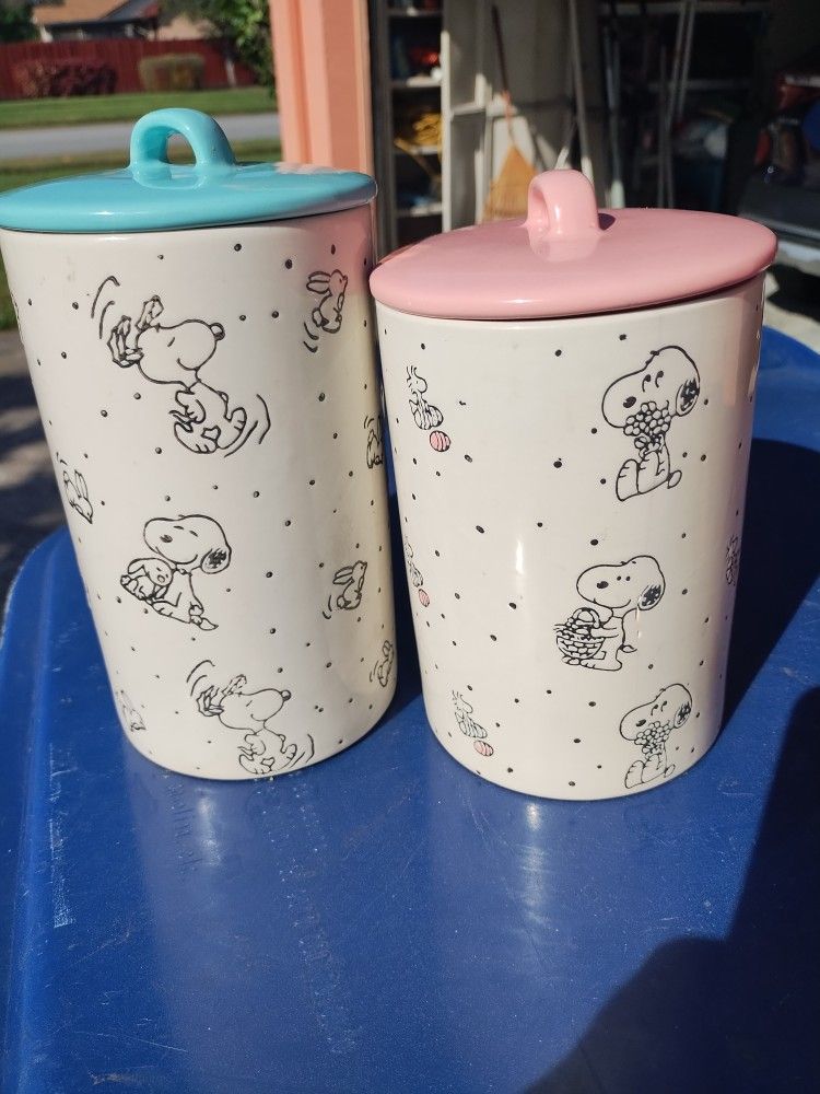 2 Ceramic Snoopy Peanuts Easter Holiday Cookie Jar Kitchen Canisters