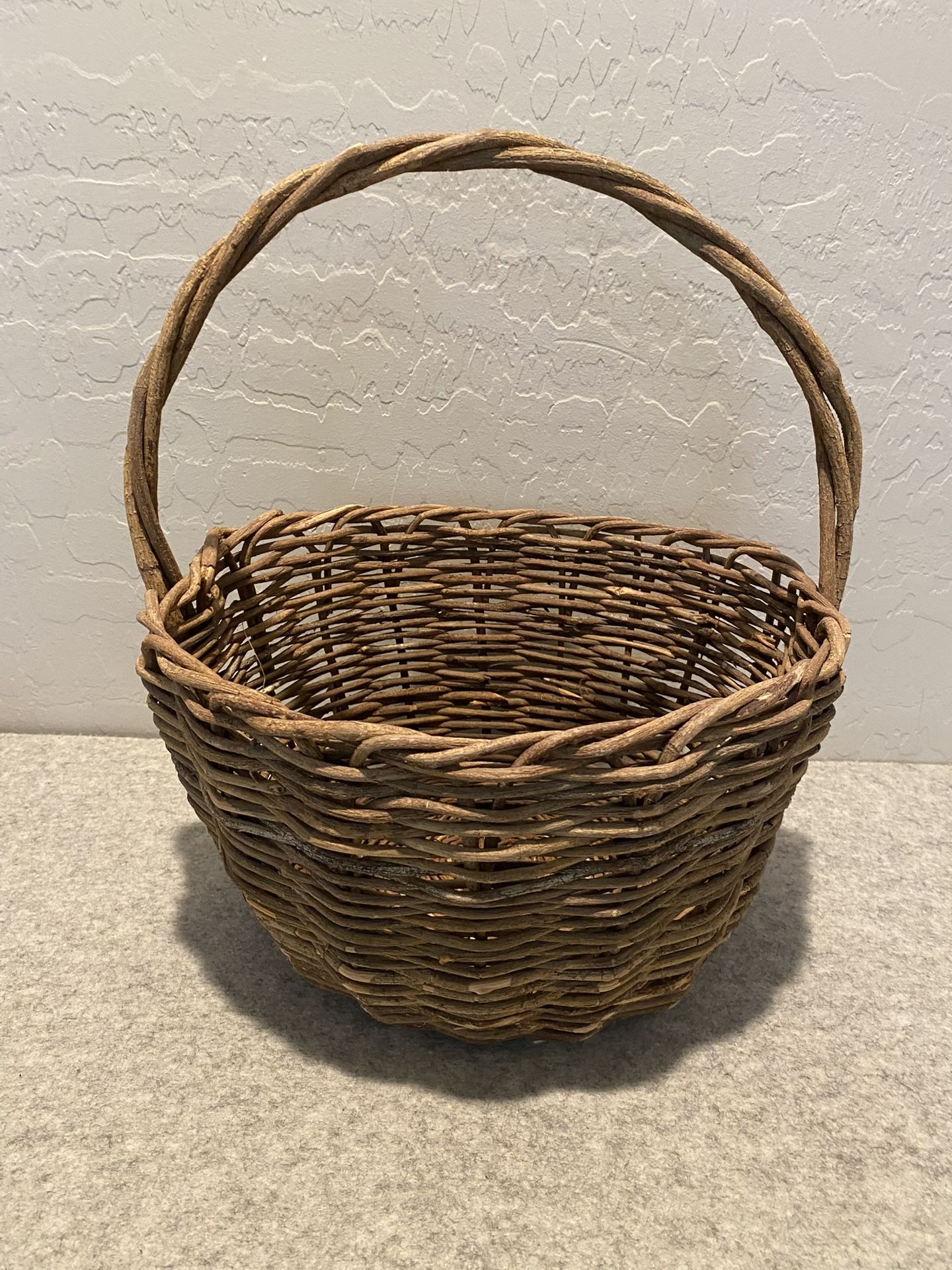 Vintage Hand Woven Basket. Good to use for gifts! Used. Good Condition. 13.5”Dx16”H Val Vista & Ray