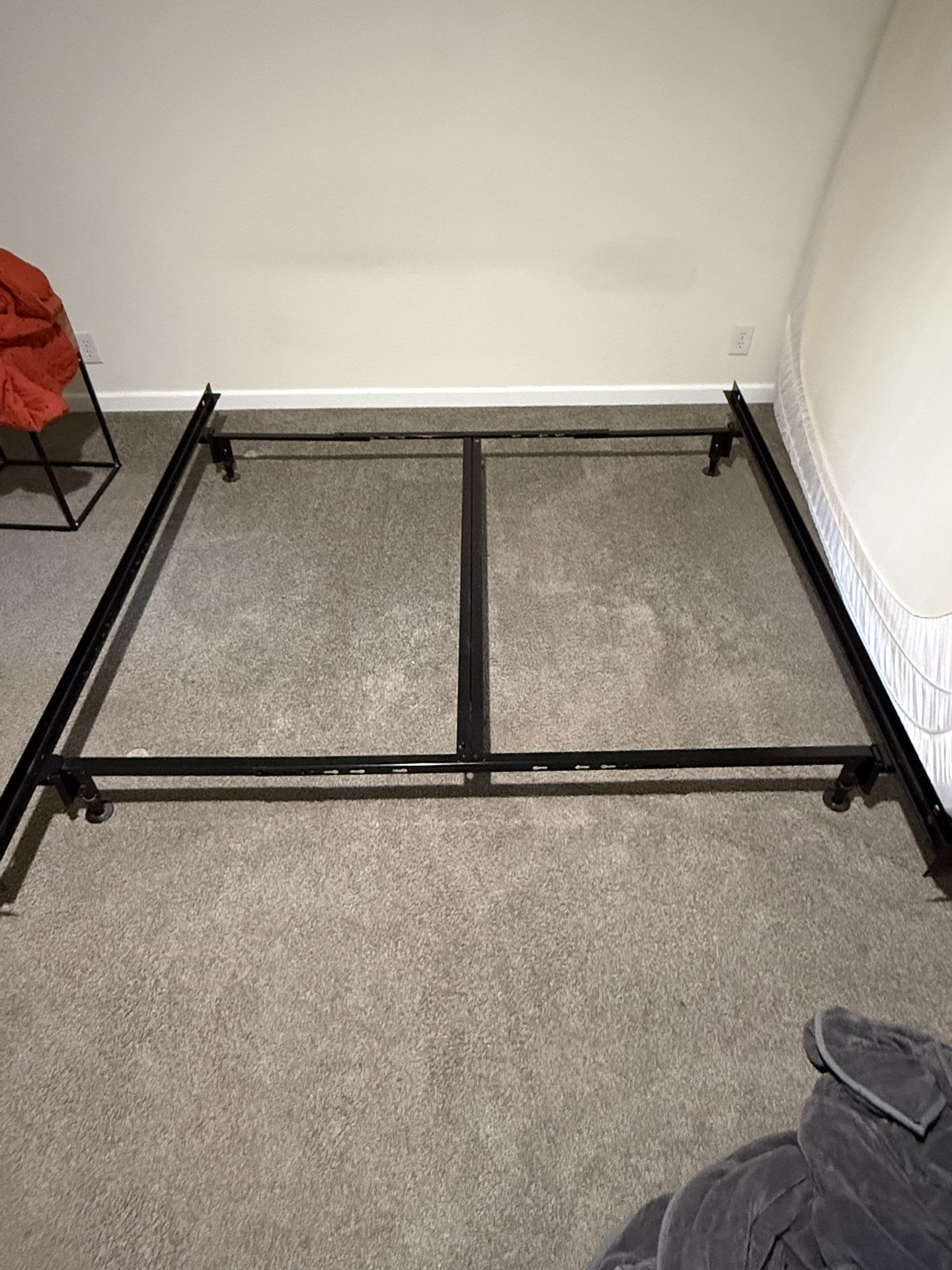 Adjustable black metal bed frame. It’s setup as a King in the photo but has been disassembled for pickup. Pickup in South Hill