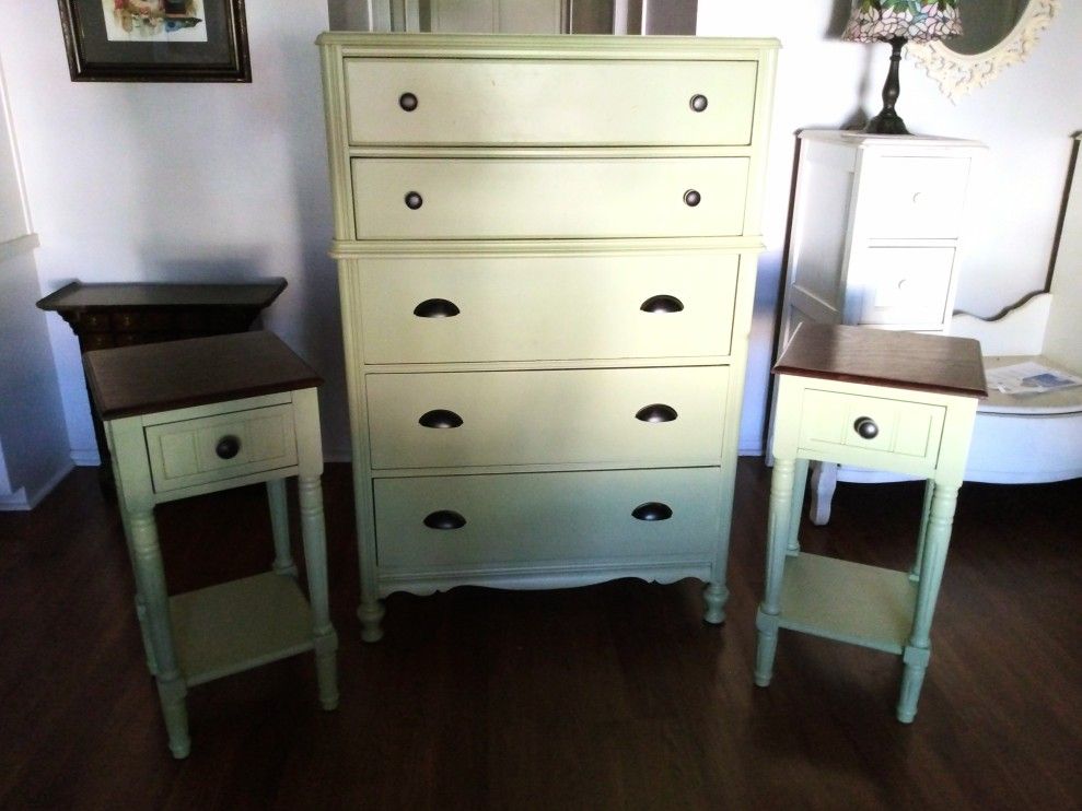 Sage Green Farmhouse Cottage Dresser and Nightstands
