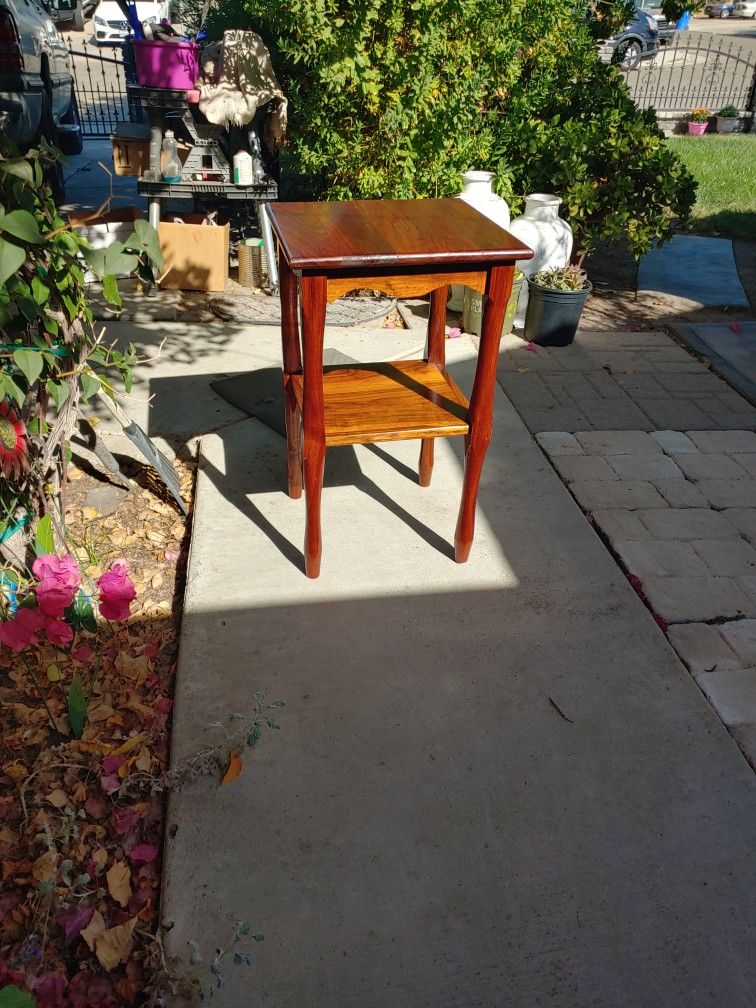 I have a beautiful all wood end or side table in Good condition measurements are 16x16 top And 26 inches high and will sell for $30