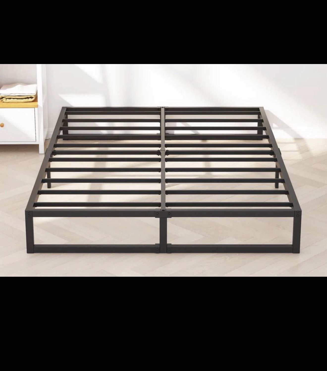 Like New, 9 inches tall, for a king bed It breaks down into several pieces for easy transport Comes with a cloth cover