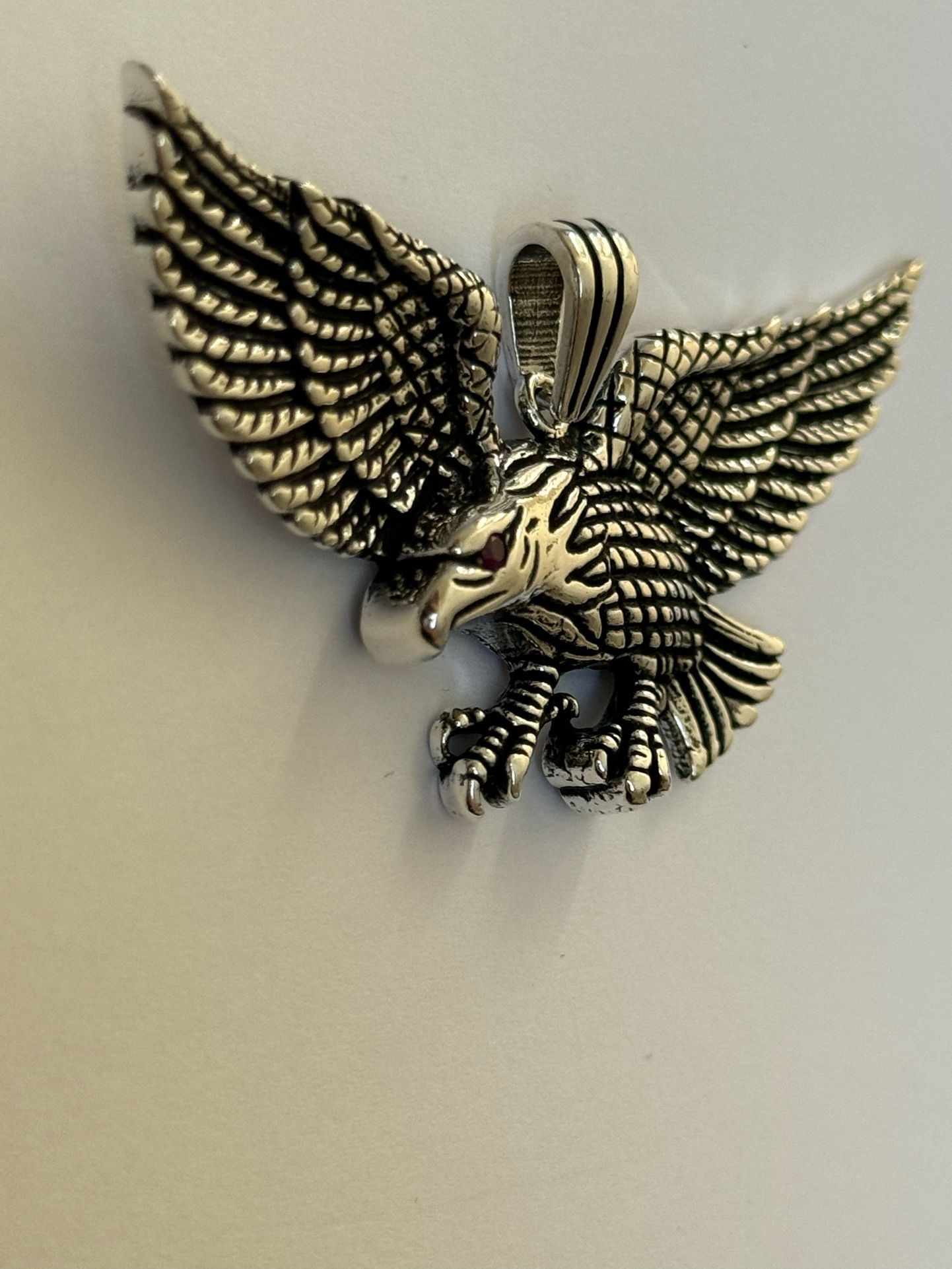 Will ship ONLY. Shipping is FREE. 💜BUNDLE TO SAVE ON SHIPPING Last 1❣️ 925 Sterling silver stunning eagle pendant with a pink cubic zirconia cz stone eye unisex for men or women selling for wholesale price in free gift box 13.5 grams 925 stamp stamps stamped With a label labels tag tags On sale sales discount wholesale low price prices 925 Silver eagle unisex wing wings pendant pink cz eye