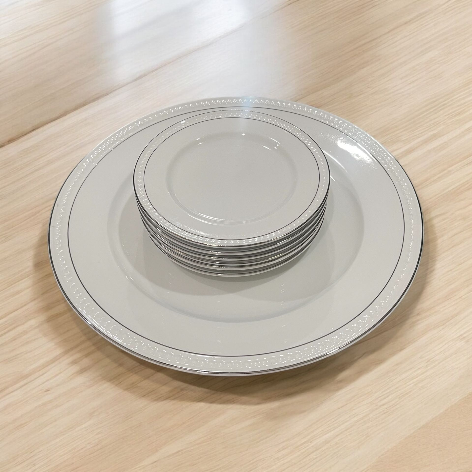 Gibson Elite White Hobnail Silver - 1 Dinner Plate, 6 Bread And Butter Plates