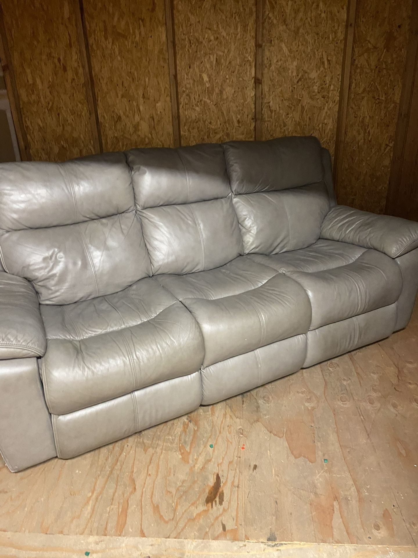 Very comfortable leather electric double recliner. Works perfect both sides have controls. The front is in great condition.
