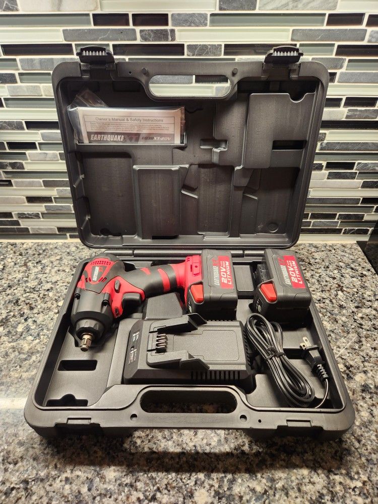 Earthquake Tools 1/2" Impact Wrench w/Two Batteries and Charger: $140 3/8" Impact Wrench w/Two Batteries and Charger (brand new): $120 Angle Grinder w/Two Brand New Batteries: $100 Or take all three tools + six batteries for $320. Pickup in Manteno. No holds.