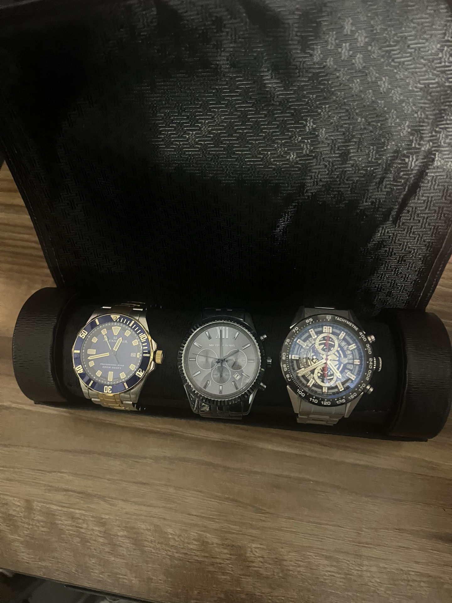Hard to find piece. Holds 3 large men’s watches comfortably. Single digit usage, kept in dust bag.