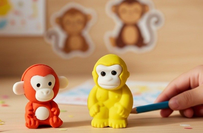 (Lot Of 2) 3D Puzzle 1" Miniature Multi-Color Erasers Figural Monkey Pair Themed. These are monkey puzzle erasers. They are popular as collectibles and function as fully usable erasers. The erasers are designed as small, collectible animal figures. They can be taken apart and reassembled like miniature puzz- les. The monkey erasers are red and yellow. The eraser on the left is a bright red color with white features for its face, ears, and belly. The eraser on the right is a bright yellow (sometimes described as golden yellow) color with white features for its face These erasers are designed to be taken apart and reassembled, functioning as both a toy and a stationery item. Usage: They are durable and can be used for erasing pencil marks, collecting, or as party favors and classroom rewards. These items are 3D puzzle erasers with a space theme, typically made from non-toxic, eco-friendly rubber materials. They function both as standard pencil erasers and as mini toys. Puzzle Design: Each eraser can be taken apart into multiple pieces and reassembled, which adds a playful element and can help improve creativity and problem-solving skills in children. Material: They are generally crafted from safe materials like thermoplastic rubber (TPR), which are often lead and PVC-free. Use: Besides their primary function of cleanly erasing pencil marks, they are popular as desk pets, party favors, classroom rewards, and collectible items.