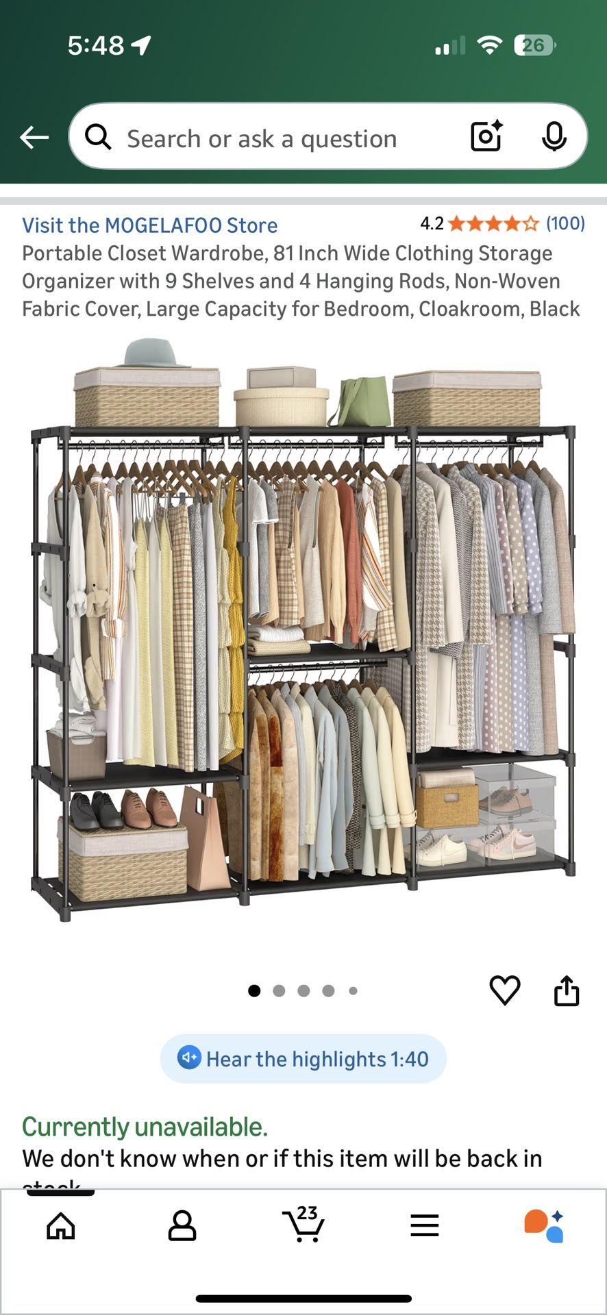 Portable Closet Wardrobe, 81 Inch Wide Clothing Storage Organizer with 9 Shelves and 4 Hanging Rods, Non-Woven Fabric Cover, Large Capacity for Bedroom, Cloakroom, Black