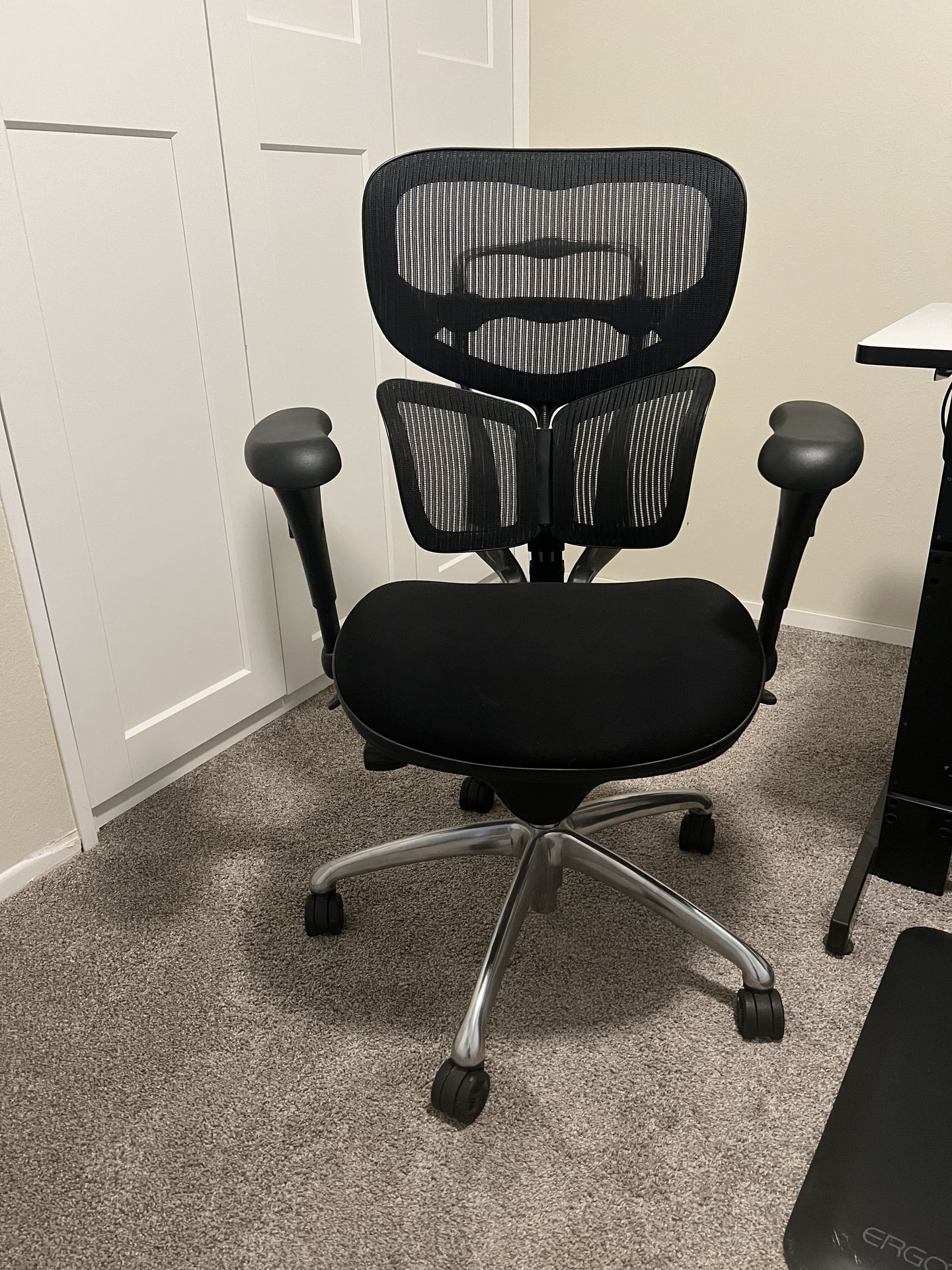 Excellent ergonomic, adjustable office chair. Has a great seat lumbar and back support. The arms are also adjustable.
