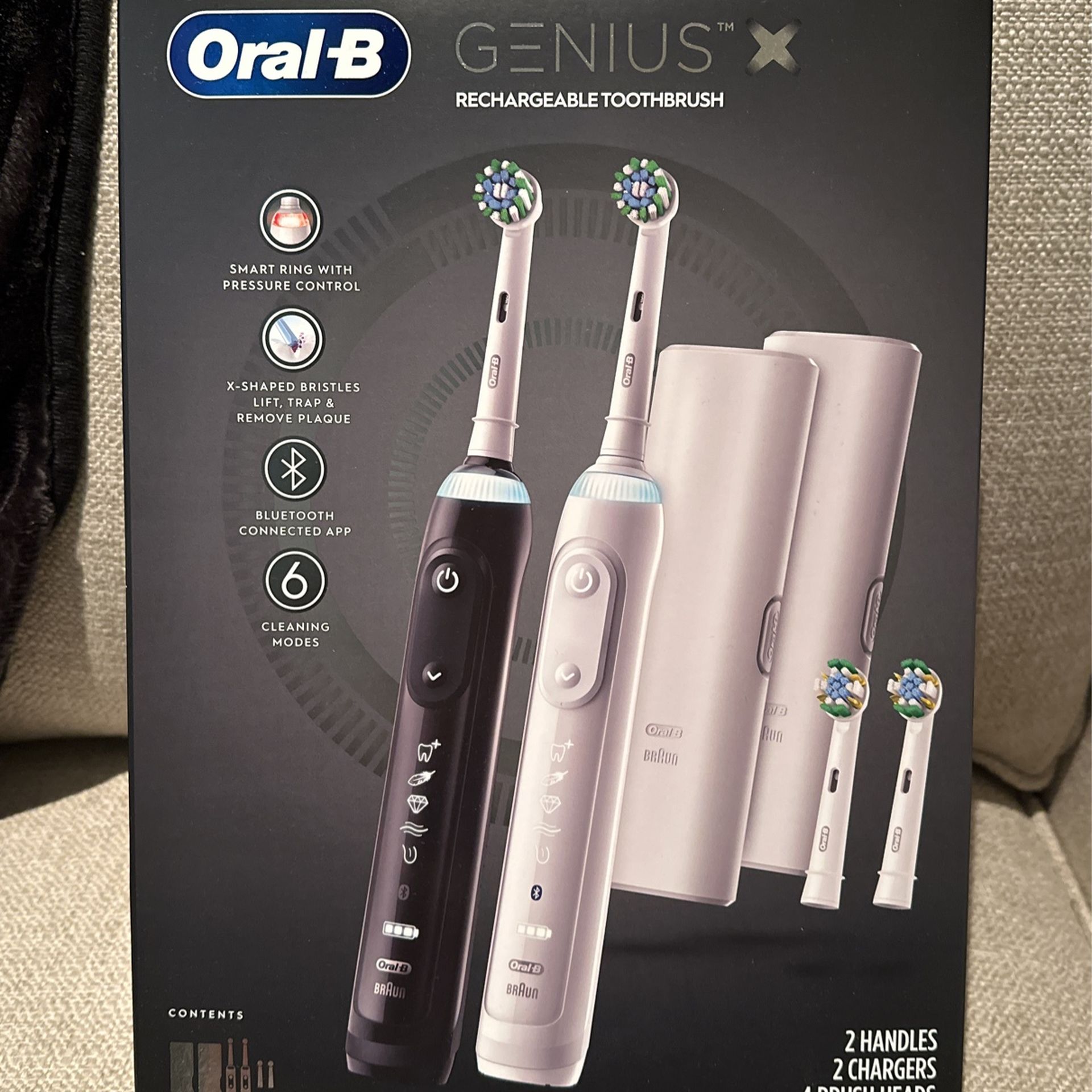 I’m selling a brand new Oral B Genius X Rechargeable Toothbrush 2 Pack. Pictures are of the actual item and box condition. Please message me if you are interested and local meet up only. Thanks!