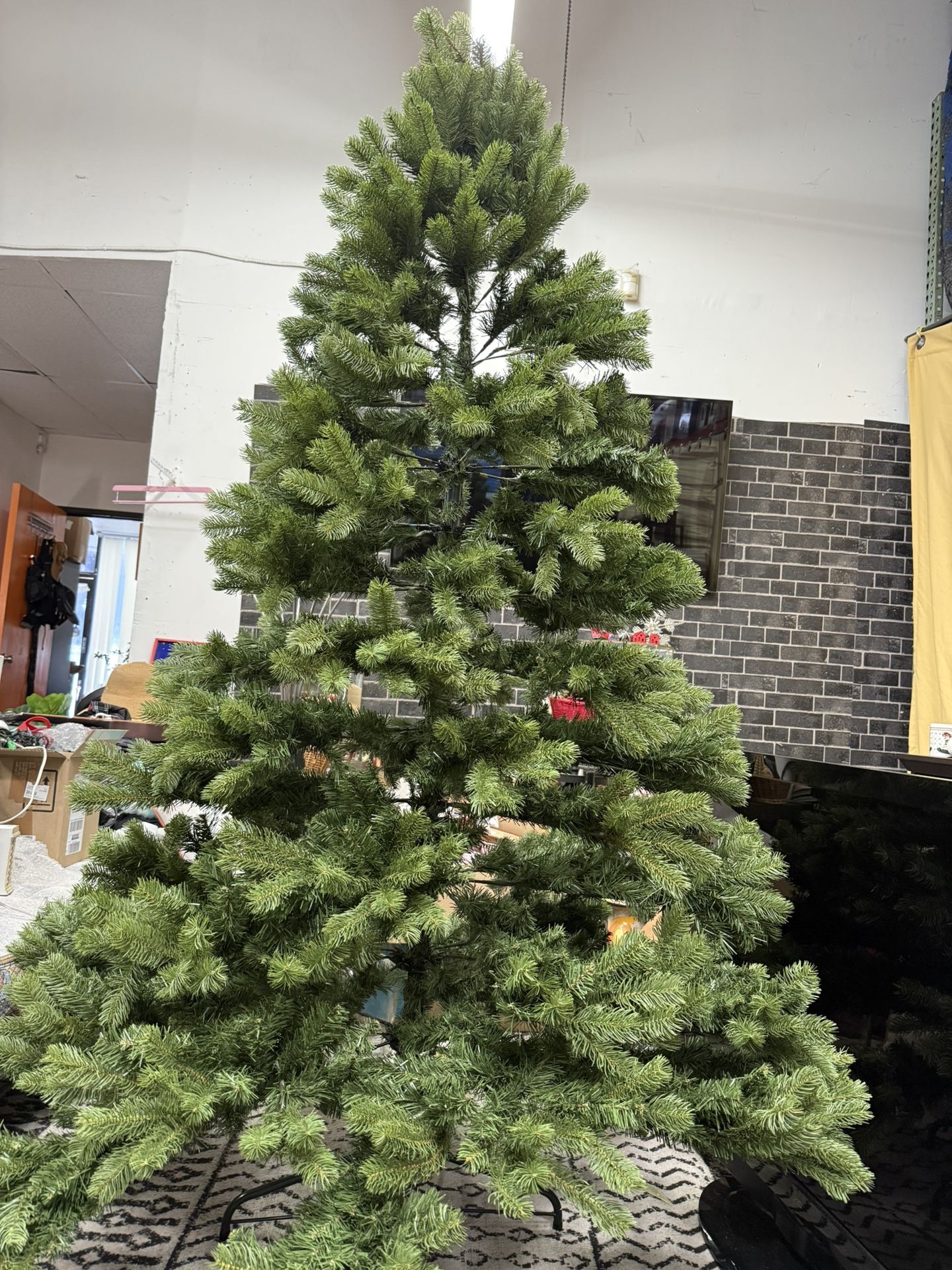 It’s a large beautiful tree fire-resistant, non-allergenic, and comes with a sturdy folding metal stand. Comes with a red storage / carry case Not pre lit great condition used once, selling because it is too large for current space.