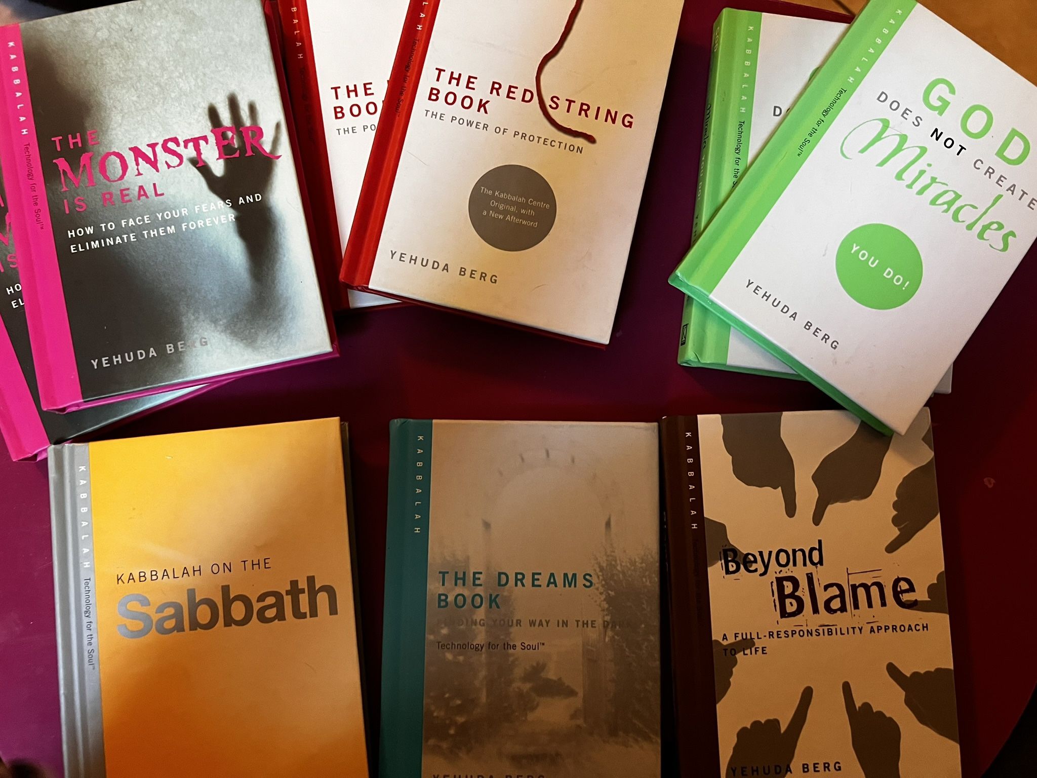 Selling $5 each or $40 for all. These books were all originally sold at $9.95/each with The Book of Dreams sold at $11.95. The Red String Book: Discover the ancient technology that empowers and fuels the hugely popular Red String. God Does Not Make Miracles: If you think miracles are one-in-a-million “acts of God”, this book will open your eyes & revolutionize your life! The Monster is Real: No matter how convincing your fears may seem, this book will show you how to attack and defeat them at their most basic source. Beyond The Blame: Berg provides simple yet potent kabbalistic tools to overcome this negative tendency toward blaming and live a happier, more productive life. The Dreams Book: Readers will discover a millennia-old system for understanding dreams & will learn powerful techniques in life and develop an overall deeper awareness. Kabbalah on the Sabbath: you’ll learn the tools and techniques to help you connect with the unique energy that this special day affords.