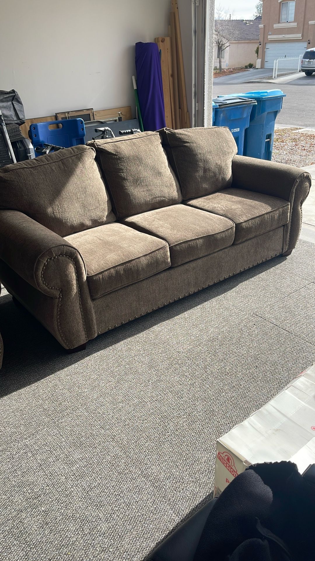 7.4ft long 2ft wide 1 studded caramel brown couch ready for pick up today on flamingo and Fort Apache