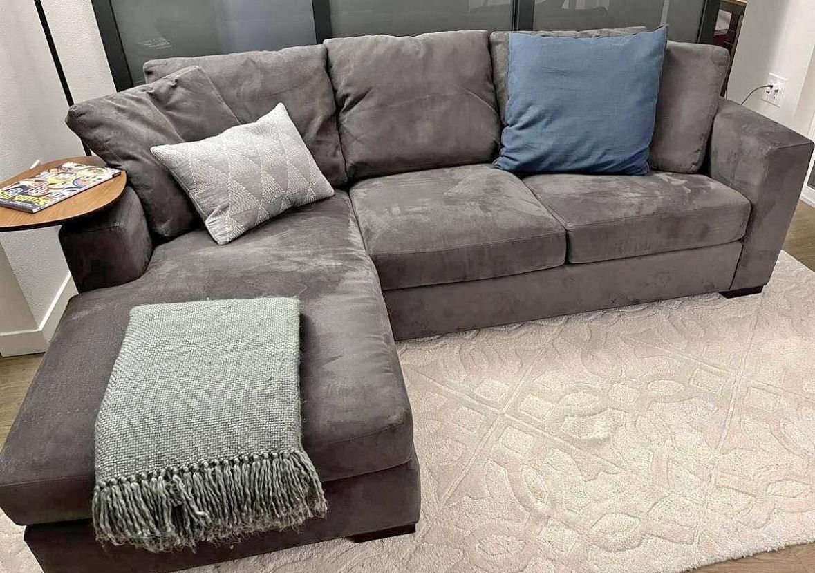 Couch is relatively small. Suede fabric with down feathers. Has two matching pillows all of the cushions are removable as well as their covers. Price is OBO.